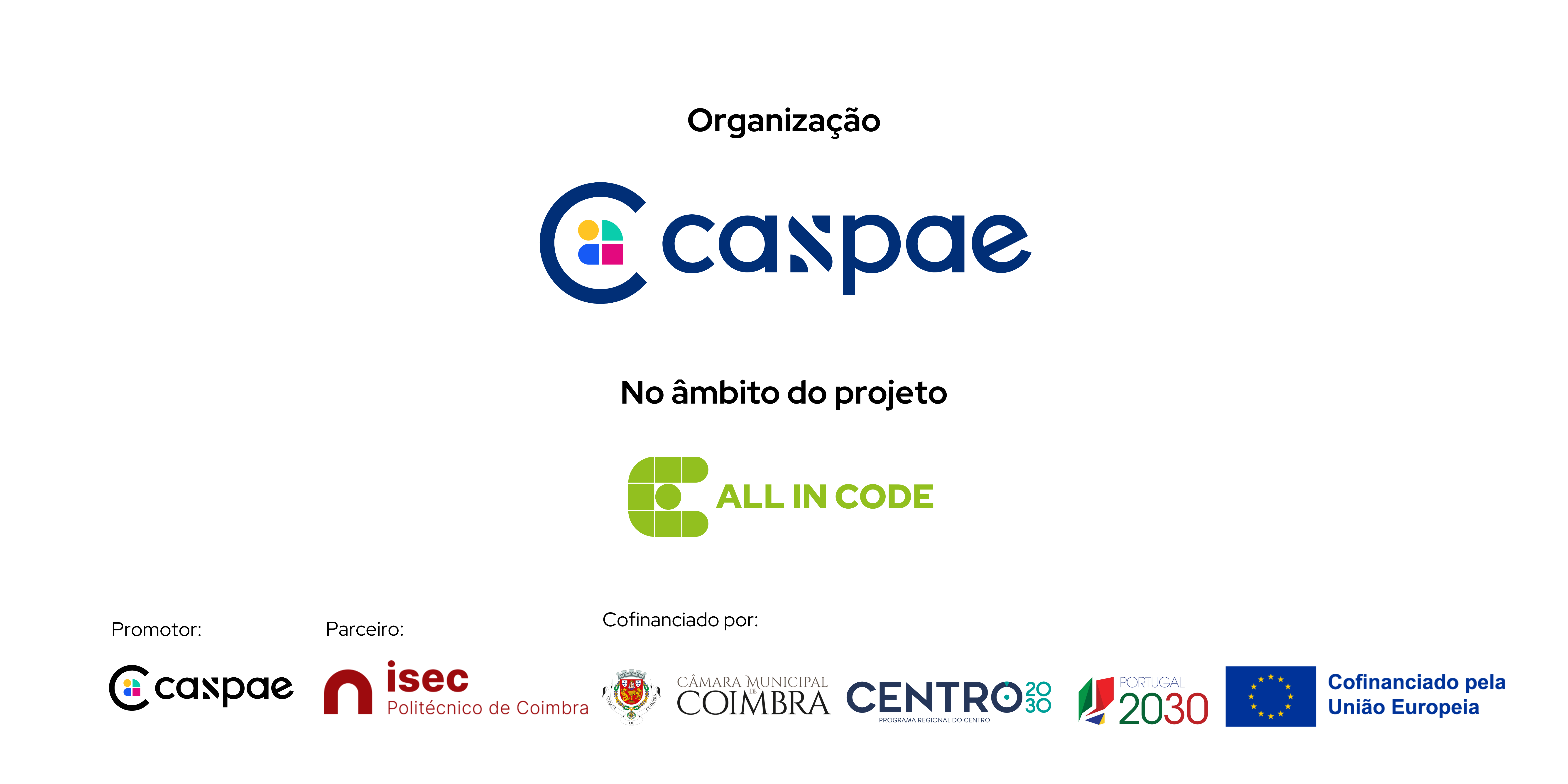 Este projeto é desenvolvido pelo CASPAE em parceria com o Politécnico de Coimbra – IPC e cofinanciado pelo Município de Coimbra e pela União Europeia no âmbito do Programa Regional do Centro – Centro 2030.